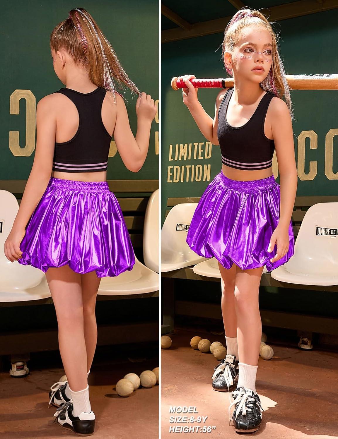 Perfashion Girls Bubble Skirt Metallic Puff Balloon Cute Mini Skorts Dance Outfits with Shorts 4-13Y(Purple 5-914)