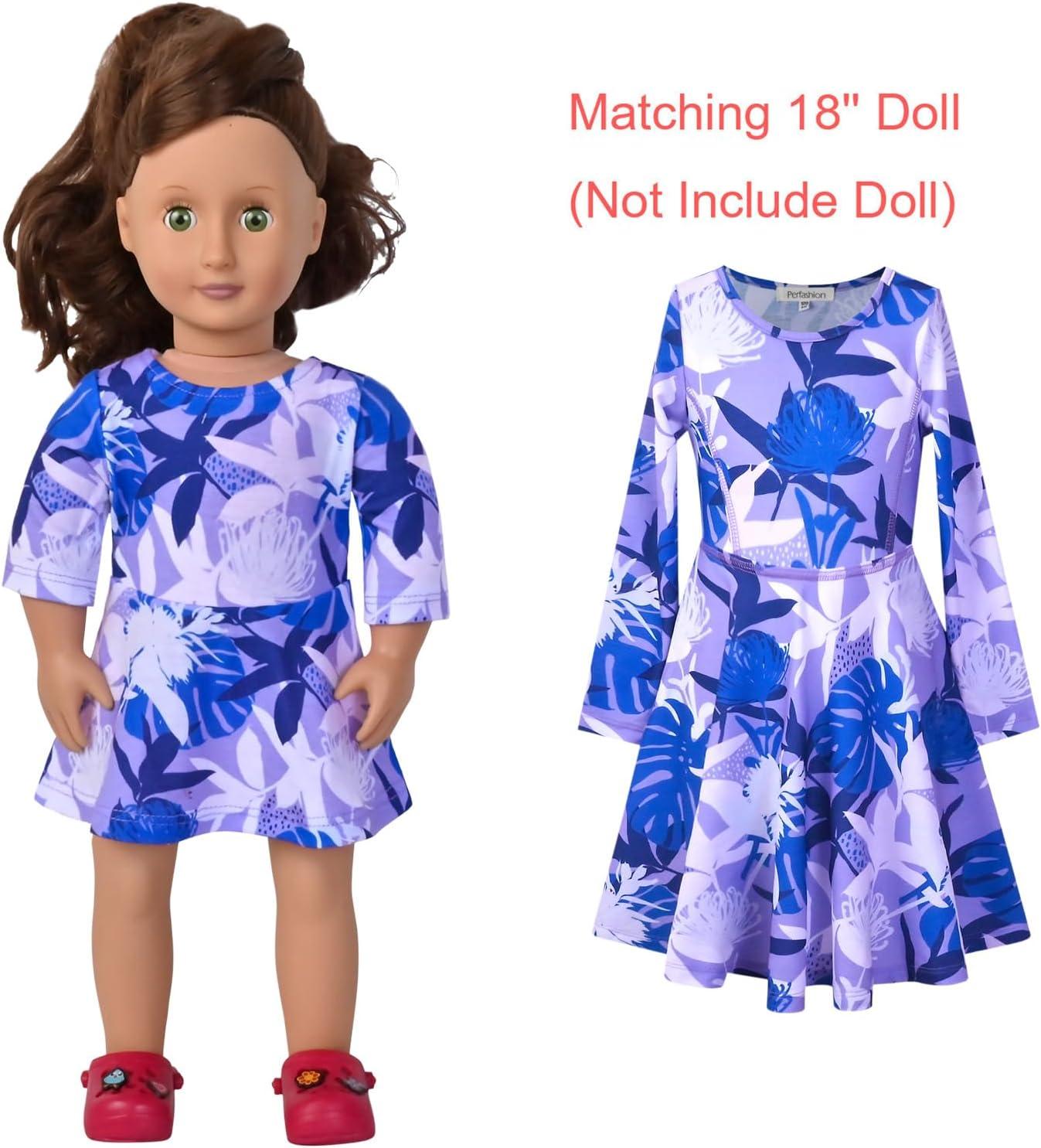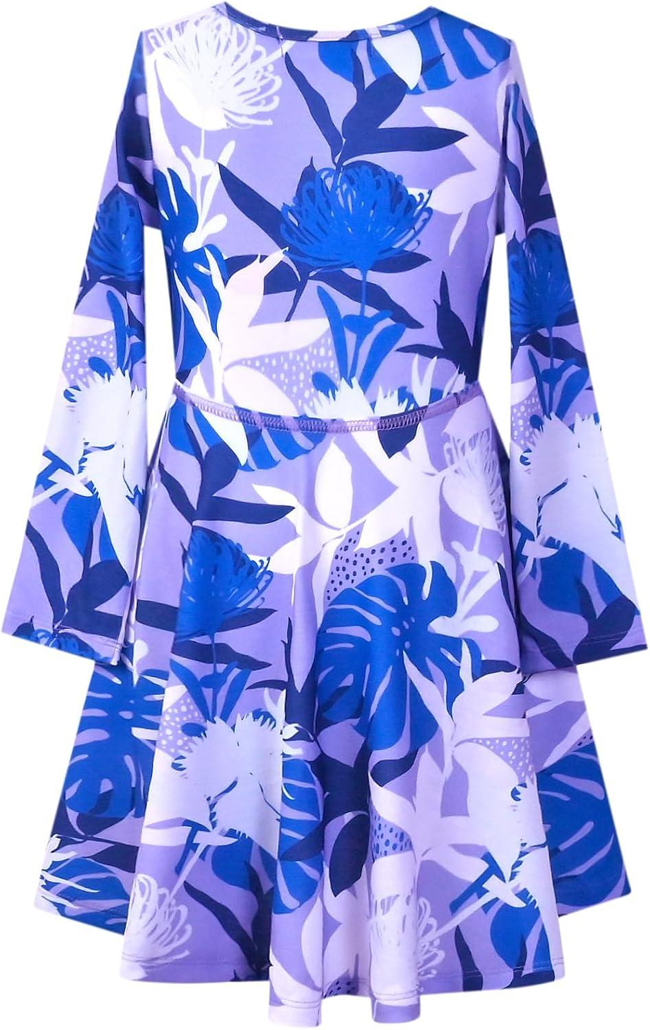 Perfashion Girls Sleeveless/Long Sleeve A-Line Dresses Unicorn Festival Skirts(Leaf-893)
