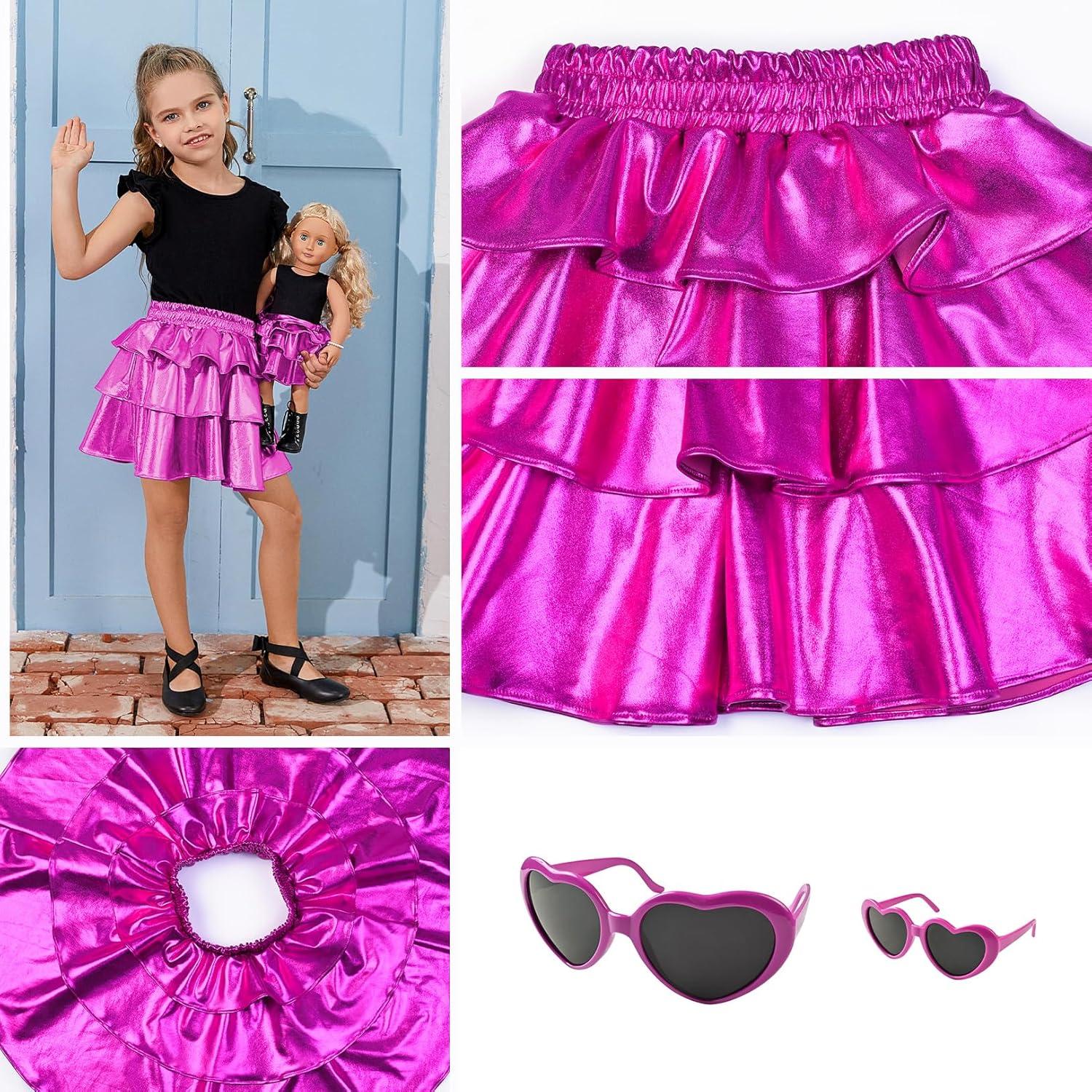 imagePerfashion Matching DollampampGirls Metallic Skirt 3Layer Ruffle Skirt with Sunglasses 415 YearsRosen151